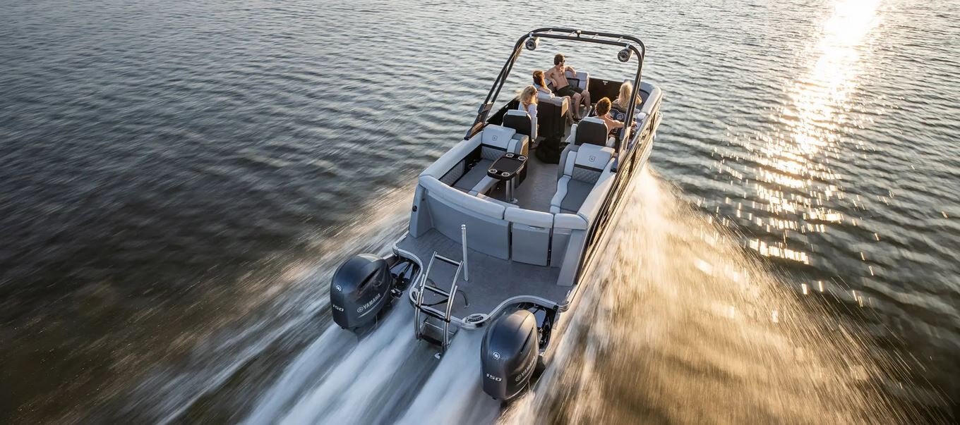 Feel confident at the helm of one of our AquaPatio Twin models. Chock full of opulent amenities such as a standard integrated touchscreen display and optional Joystick controls on Twin models, you'll never want to return to the dock after a day on the water.