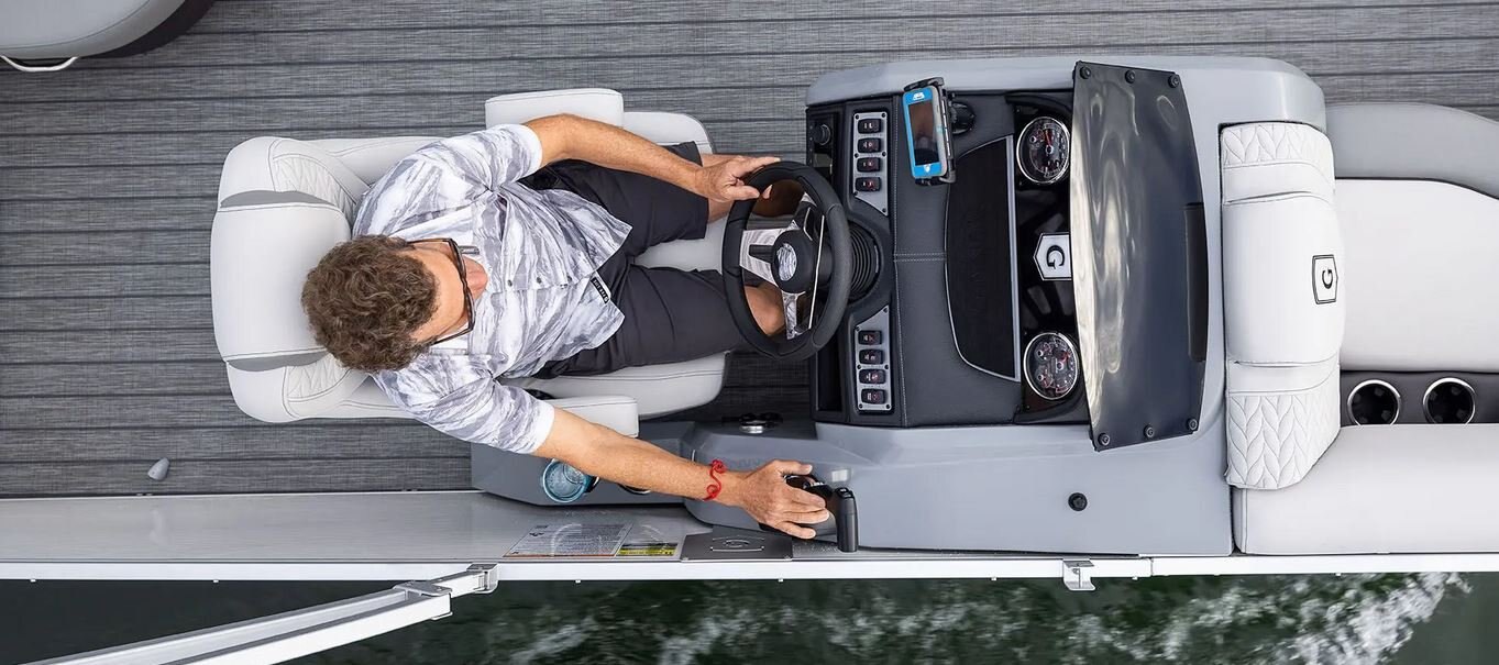 You won’t find cookie-cutter consoles on a Godfrey. Inspired by the automotive industry, our intuitive, next-generation helm allows for optional upgrades as well as obstruction-free under helm access.