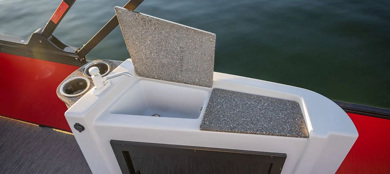 Chart a course for laughter and good times with friends and family aboard the Sweetwater Entertainment model featuring an ideal combination of lounge seating, wet bar and table options in 22 to 24-foot lengths.