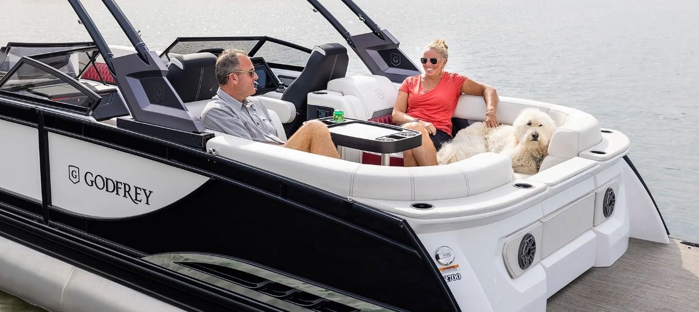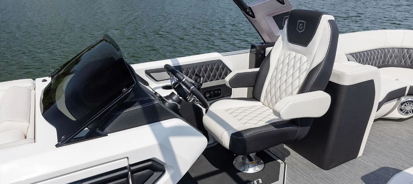 Let your time on the water shine with elegant forward and rear-facing lounge chairs. Available in our Ultra-Soft-Touch material, the hand-stitched finish illustrates the enduring craftsmanship instilled into every Godfrey boat.