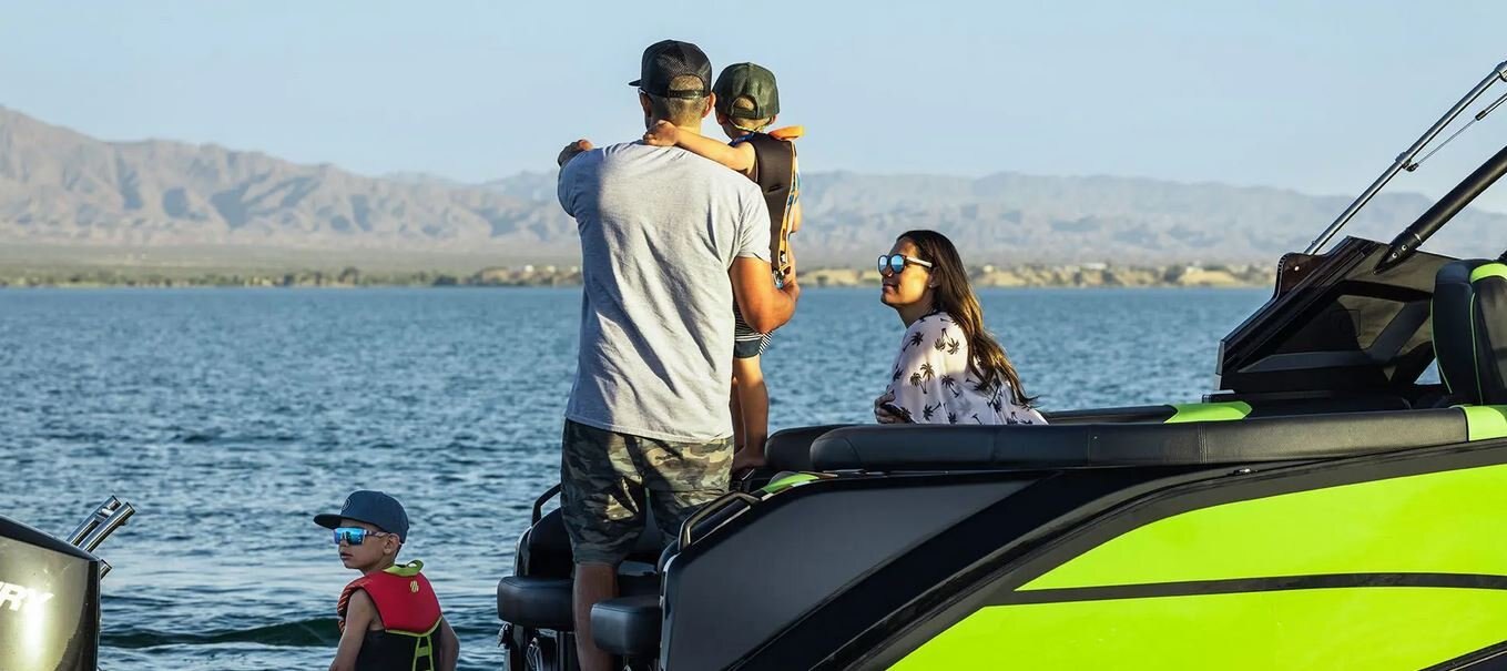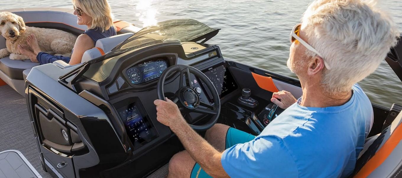 The XP's intuitive helm features a wide-screen multifunction display with 12" and 7" touchscreens and a custom user interface. Optional Joystick Controls on Twin models offer an advanced piloting experience allowing you to maneuver sideways and diagonally, or spin the boat on its own axis with confidence.