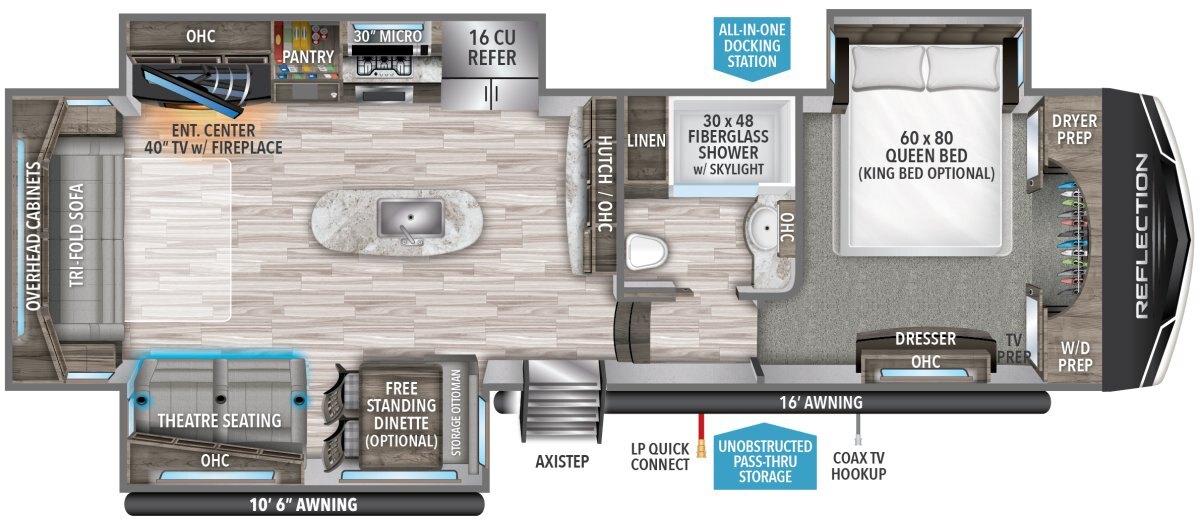 The Grand Design Reflection combines luxury, value, and towability in one amazing package. Grand Design’s commitment to exceeding customer expectations, in quality and service, has quickly made the Reflection a top-selling name in North America. If you want the best-in-class, you found it.