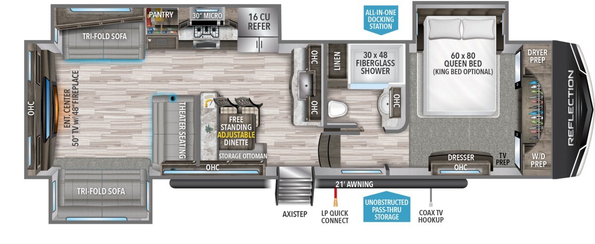 The Grand Design Reflection combines luxury, value, and towability in one amazing package. Grand Design’s commitment to exceeding customer expectations, in quality and service, has quickly made the Reflection a top-selling name in North America. If you want the best-in-class, you found it.
