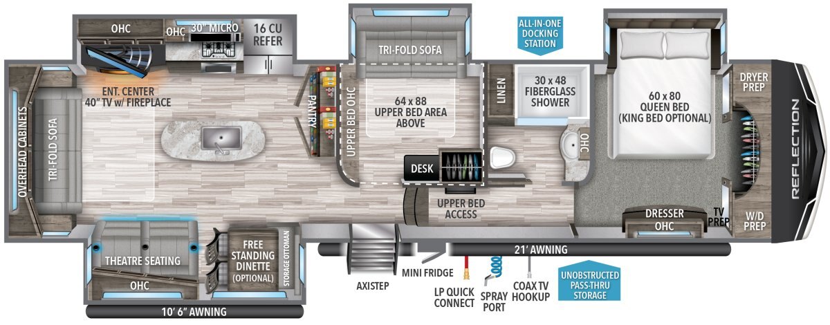 The Grand Design Reflection combines luxury, value, and towability in one amazing package. Grand Design’s commitment to exceeding customer expectations, in quality and service, has quickly made the Reflection a top-selling name in North America. If you want the best-in-class, you found it.