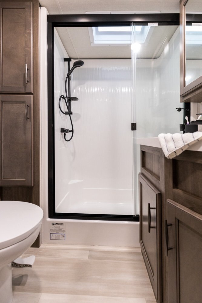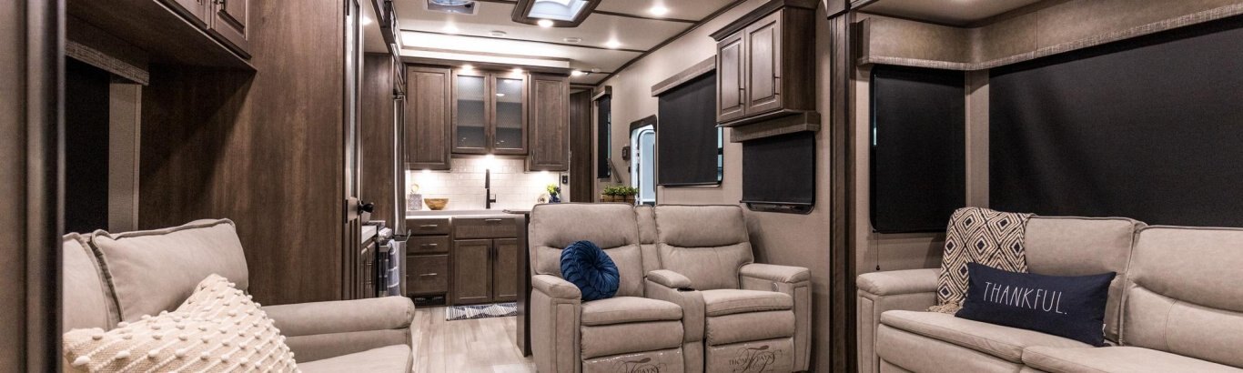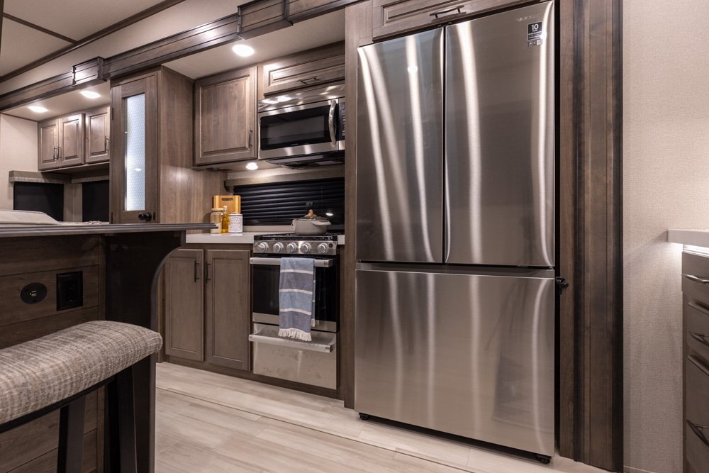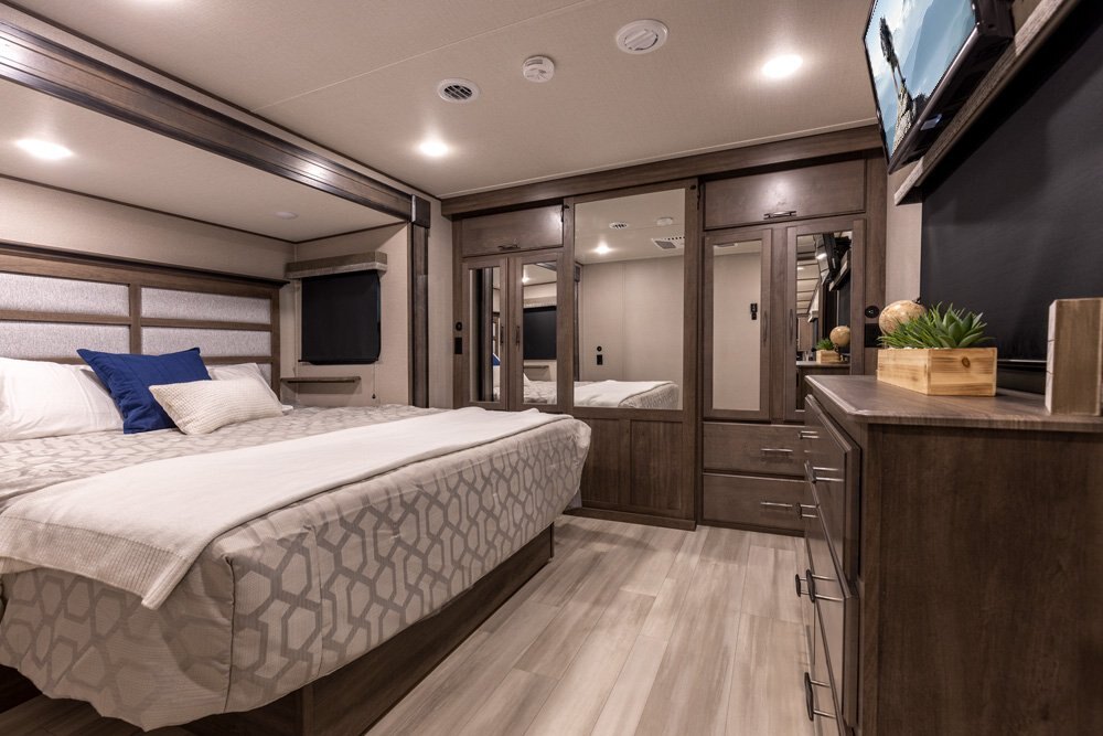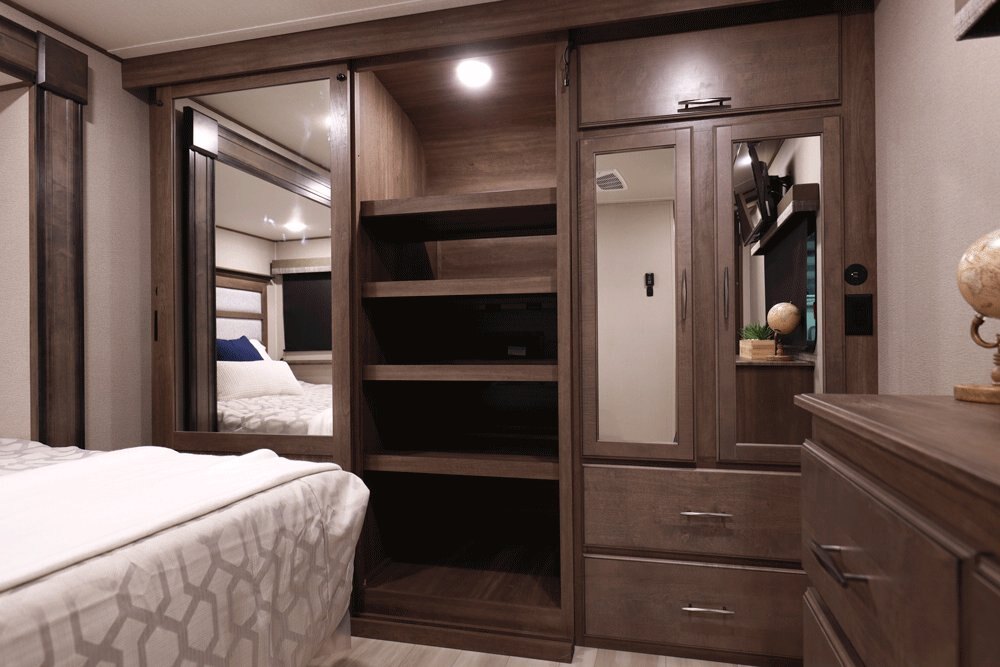 If more room is what you desire, Solitude is the most spacious Extended Stay Fifth Wheel ever built! The Solitude RV delivers taller ceilings, taller, deeper cabinets, larger scenic window areas, a full 6' 8" tall slideout, and a body width that measures a full 101 inches!