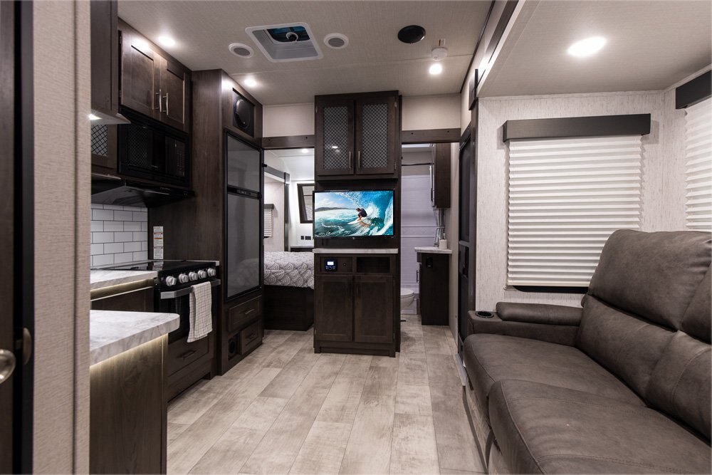 The public has spoken, and Grand Design has answered with the introduction of the all-new Momentum G-Class to its toy hauler lineup. The lighter G-Class series is built without surrendering any of the legendary quality, innovation, and functionality that our family of Momentum owners have come to love. Ceiling and slide out heights still stand tall along with our wide-body platform to create a feel of spaciousness.