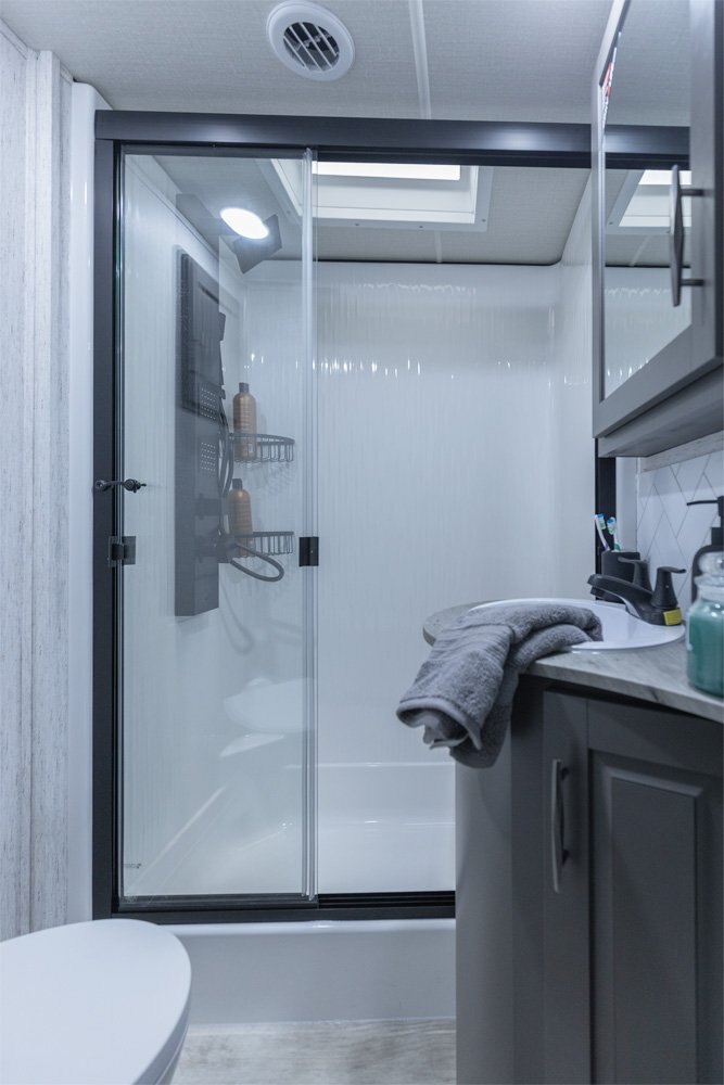 • One-Piece Fiberglass Shower w/Glass Door(S)