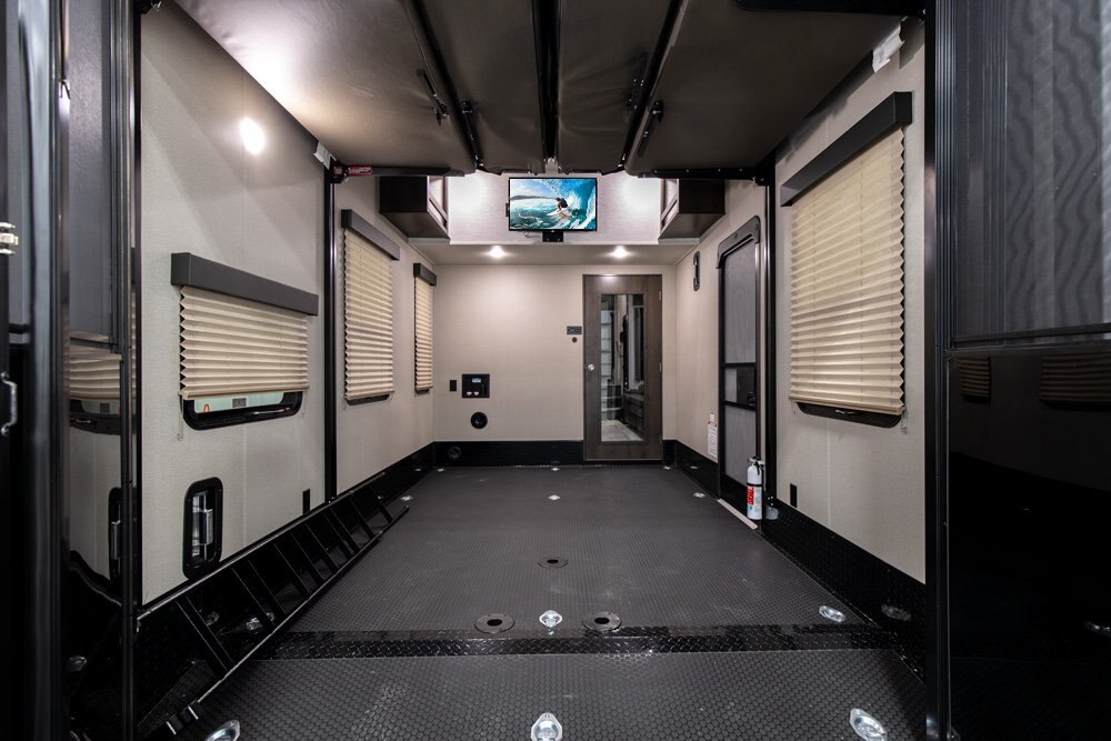 The Momentum Fifth Wheel Toy Hauler is the point where absolute luxury meets mobile garage! We have completely raised the Toy Hauler bar by incorporating an elegant Master Bath and Master Suite (with a full walk-in closet) into this unit! But trust us, we didn't ignore the Living and Garage areas. Check out our Floorplan Fly-Through Videos and get a feel for the extraordinary space we've created. We know you will agree with us when we say that "The Momentum RV is the place to live well and play hard!".