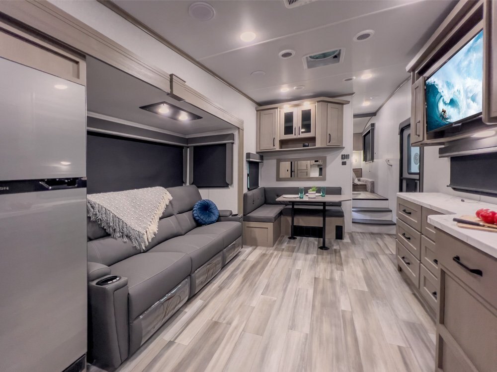 The Reflection 150 Series delivers maximum living without maxing out your truck. With floorplans starting under 7,000 pounds and 90-degree turning radius capabilities, you can tow in confidence with many of today’s half-ton and short bed trucks. The towability, spacious interior, and luxury features of the Reflection 150 Series are redefining what it means to be half-ton towable.