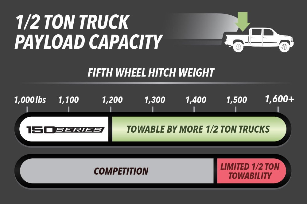 The Reflection 150 Series delivers maximum living without maxing out your truck.  With floorplans starting under 7,000 pounds and 90-degree turning radius capabilities, you can tow in confidence with many of today’s half-ton and short bed trucks.  The towability, spacious interior, and luxury features of the Reflection 150 Series are redefining what it means to be half-ton towable.