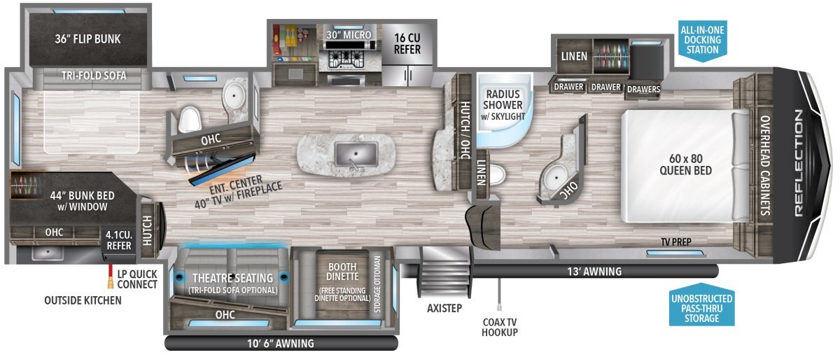 The Grand Design Reflection combines luxury, value, and towability in one amazing package. Grand Design’s commitment to exceeding customer expectations, in quality and service, has quickly made the Reflection a top-selling name in North America. If you want the best-in-class, you found it.