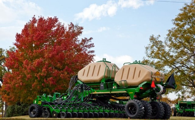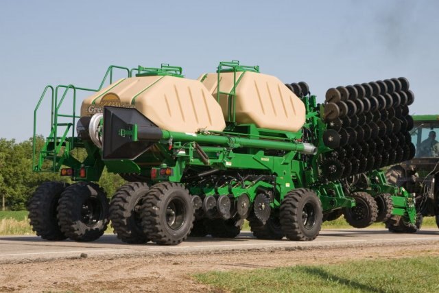 Two (2) 100-bushel hoppers, wide walkboards, and ladders combine to make an air drill that keeps you in the field. |