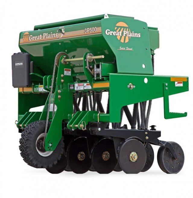 ![]() Great Plains designed its 5' (3P500) Min-Till Drill to get into places big drills simply can’t – like wooded areas, orchards, and vineyards. It is ground driven and is excellent for seeding into fully prepared and minimum tillage plots. Our 3P500s feature 4-speed gearboxes for fast seed rate changes. It has a seedbox capacity ranges of 10 bushel. An optional small seeds box can be added to our 3P500 models to plant two different seeds at the same time. 3P500s are equipped with our rugged 00 Series Openers to provide accurate and consistent seed placement. Our 00 Openers have 7" of stagger to allow residue to easily flow through the unit. Inside the opener, our full length seed tube gently guides the seed all the way to the bottom of the trench while the seed flap ensures the seed stays in place, eliminating the seed “bounce” that is created by competitive drills. The trailing press wheels maintain proper opener depth, close the seed trench, and firm the seed into the soil. T-handles quickly adjust the press wheels and allow for small incremental changes in planting depth. Other features found on these models include a highly visible seed level indicator; extremely accurate fluted feed cups; V-bottom inserts on the inside of the seedbox that allow all the seed to be metered; a convenient crank to calibrate seed; watertight lids that stay open for easy filling; and splash guards that prevent seed loss. |