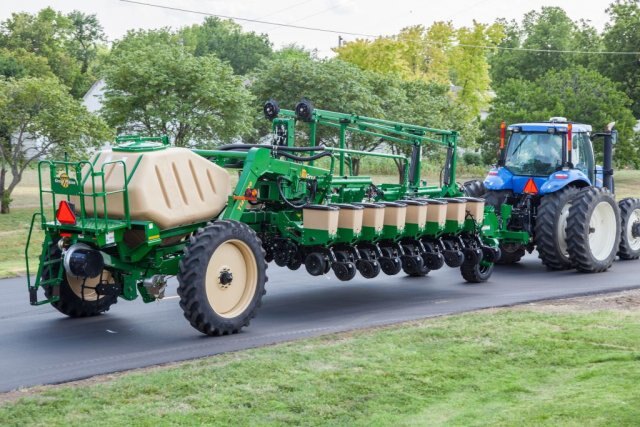 The Yield-Pro® 1630F from Great Plains is a 16-Row Planter that combines the efficiency of one-step bulk dry fertilizer application and 30" row spacing. It utilizes a single 100-bushel poly hopper to hold dry fertilizer and our field-proven air drill metering system that accurately delivers fertilizer to every row. The ground-driven fertilizer delivery system incorporates star wheel meters and a Zero-Max Gearbox to make fine-tuning fertilizer rates simple and easy. Seeding is also driven with a ground drive wheel on each planter section. Each row holds a 2-bushel seed hopper for a total capacity of 32 bushel. An optional 1-bushel insecticide hopper can also be added. A DICKEY-john® PM 400 monitors seed flow and includes blockage monitoring on each fertilizer tower hose. The row unit is a 30 Series Opener with double-v closing wheels. The double disk opener features a 15" diameter 4mm thick blade, 205 triple-lip-sealed bearing, and 1/2" leading opener blade. The YP-1630F is designed with a robust 30' working width, but folds to a narrow 12'6" without insecticide or 13'4" with insecticide for safe and easy road travel. The YP-1630F Planter’s design and expanded features deliver on the special requests and specifications of the Great Plains customer. |