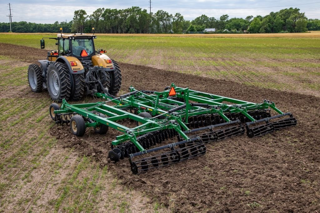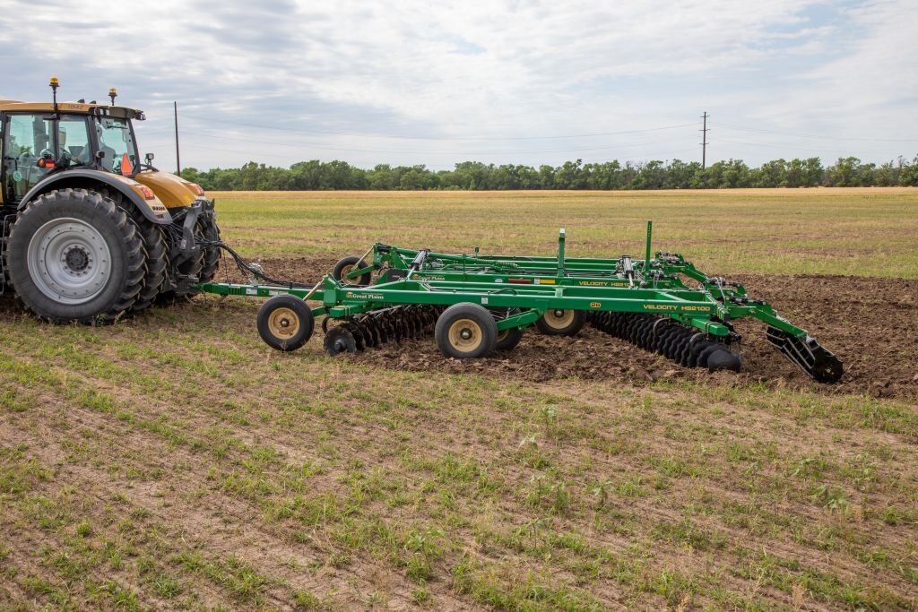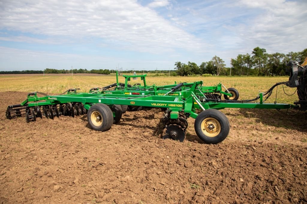 The new Velocity is a hybrid tillage implement, designed to bury more residue than a true vertical tillage tool like the Turbo-Max®, but with shallow-concavity SpeedBlades™ on 7½" spacings. The Velocity runs faster than a disk harrow, and is designed to out-cut and out-finish competitive low-concavity, high-speed disks in the vertical tillage market. |