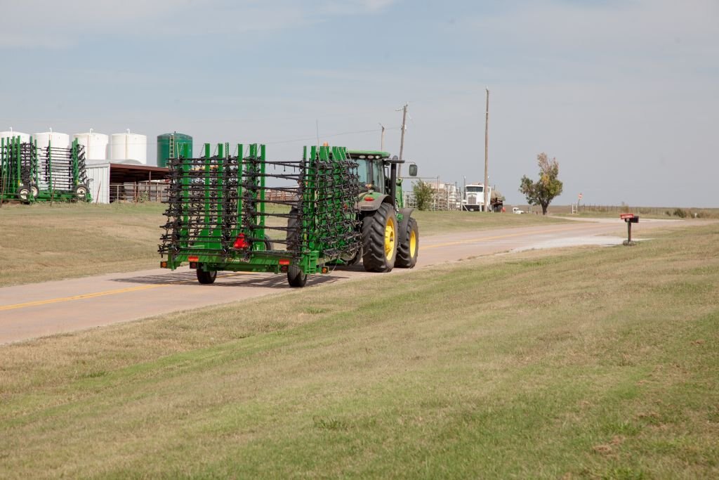 Unit can be lifted and folded with one SCV control. Allows for unit to be pulled behind other tillage implements. |