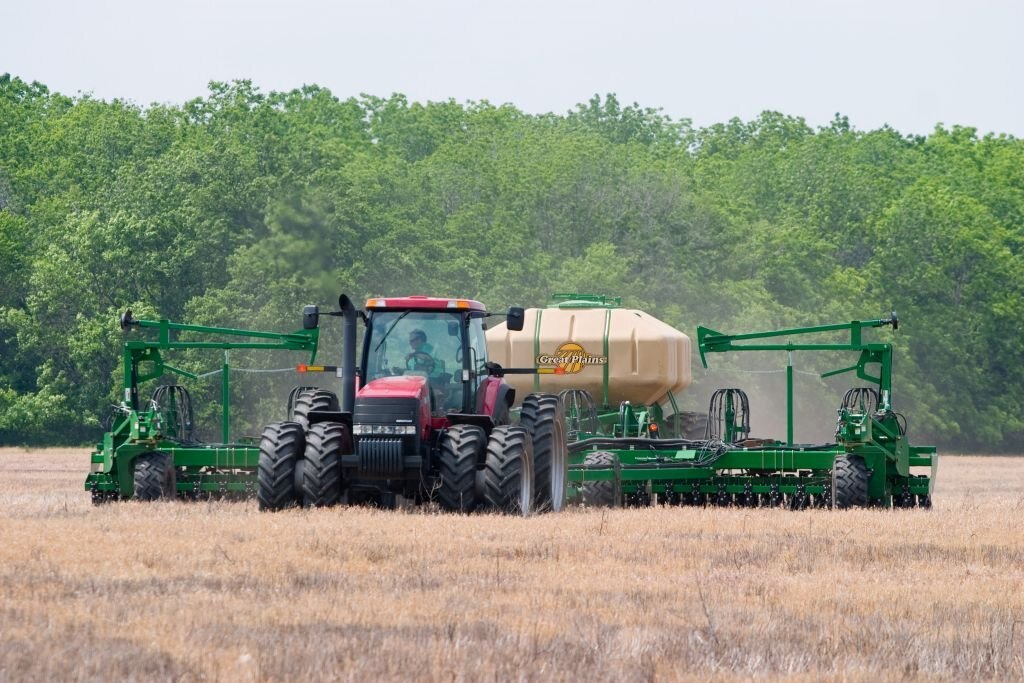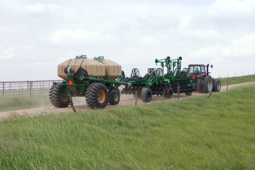 The 3N-4010HDA No-Till Air Implement from Great Plains utilizes the 10HD Series opener, a floating tongue, and 12° of wing flex up and down for following contours and negotiating uneven terrain.