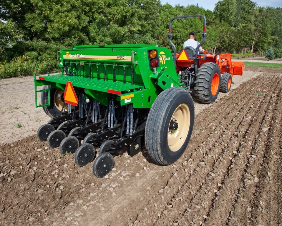 The Great Plains 7' End Wheel No-Till Drill (706NT) offers the perfect balance between smaller drill versatility and larger drill productivity. This unit is at home seeding in a wide variety of applications, from pasture renovation to mine reclamation.