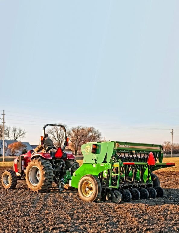 The Great Plains 8' Min-Till Drill uses field-proven 00 Series Openers to properly and accurately place seed in smaller fields and spaces. This rugged opener utilizes 13½", 4mm thick disc blades with 205 triple-lip seal bearings for long life. It also features full-length seed tubes and T-handle depth adjustment with 18 settings to precisely control seed depth. Changing the 5-position, centrally located down pressure adjustment is quick and easy, ensuring the correct pressure regardless of the conditions.