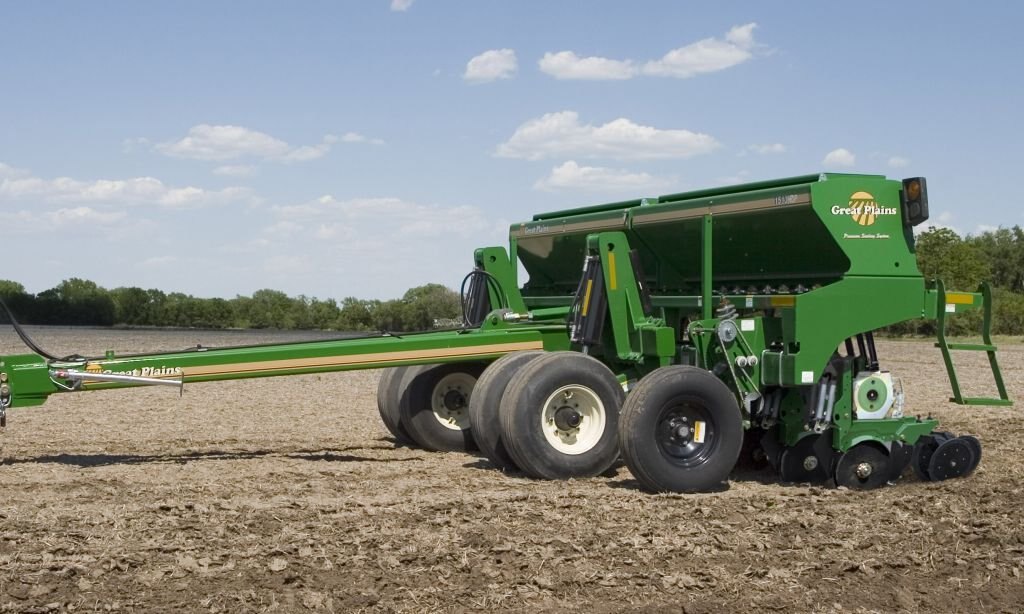 Great Plains 10HD Series Drills are the “drills of choice” for challenging conditions. The heavy-duty blades used on these drills are mounted on a forged disc standard for durability. The opener’s 15" disc blades are offset by ½" to add strength, increase trash flow, and provide proper penetration.