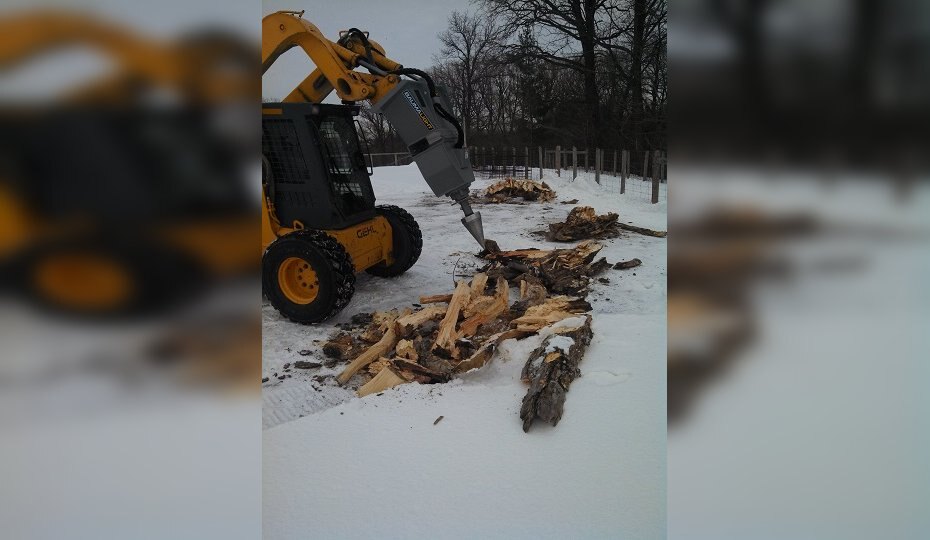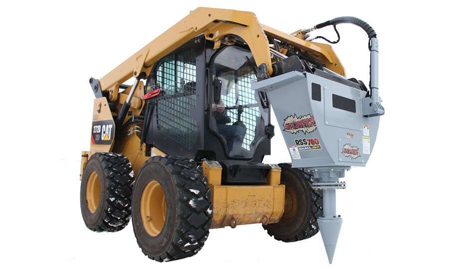 Power comes from our hydraulically driven planetary motor, delivering up to 3,800 ft/Lbs of torque to the splitting head and that’s where things get really twisted. The bit’s bite comes from machining two helical spirals into a solid piece of steel. The two spirals join at the tip for easy boring into the log. Driven on a 2" hex shaft with an integrated shield that protects the drive from the rigors of splitting wood Splinter is ready to take on pieces of wood and logs up to 8 ft long. Splinter is designed to be mounted to excavators or skidsteers. With Splinter you will be boring but you won’t be bored. From the comfort of your cab (either skidsteer or excavator) let splinter tear into logs either horizontally or vertically and finish your splitting in no time. |