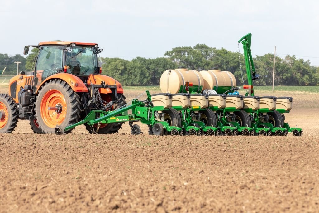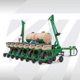 Product Description Front-Fold Planter With the same quality and innovation as other Great Plains planters, the PL5500 gives producers a simple, 8-row wing-fold planter with narrow-transport capabilities. A transport width of 9' 9" provides easy and safe maneuverability of the planter from field to field and only requires 115-drawbar horsepower (minimum) to pull, making it compatible with a wide range of tractors. Featuring the new 5000 Series Row Unit with the all-new Air-Pro® Meter and its simple, positive air pressure design, the PL5500 achieves greater singulation, seed placement, and closing of the furrow in all conditions. The Individual Row Control (IRC Electric Drive) option allows variable rate, row-by-row section control, and turn compensation, ensuring proper planting rates while reducing expensive input costs. The new 5000 Series Row Unit has a 66% larger seed pool and simplified housing, and a choice of 1.6- or 3-bushel hoppers with lid assist. With both dry and liquid fertilizer options, producers can integrate the planter into their current fertilizer program, placing fertilizer in-furrow (liquid) or 2" from the row (liquid and dry) with fertilizer coulters or dribblers. Row-Pro™ systems are offered to automatically maintain the proper selection of down pressure on each row unit. |