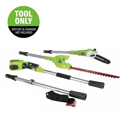 Powered by a Greenworks Pro 60V lithium-ion battery this Greenworks Pro cordless pole saw and pole hedge trimmer delivers the power and performance...