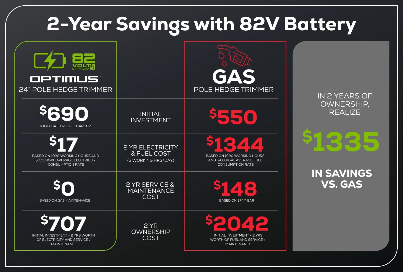 Greatly reduce intensive maintenance work and save both money and time vs. traditional gas-powered hedge trimmers.