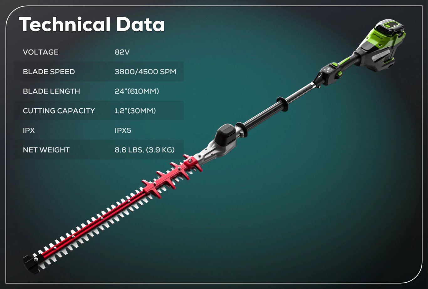 Maintenance for the 82v battery powered 24” hedge trimmer is limited to gearbox lubrication and blade replacement. |