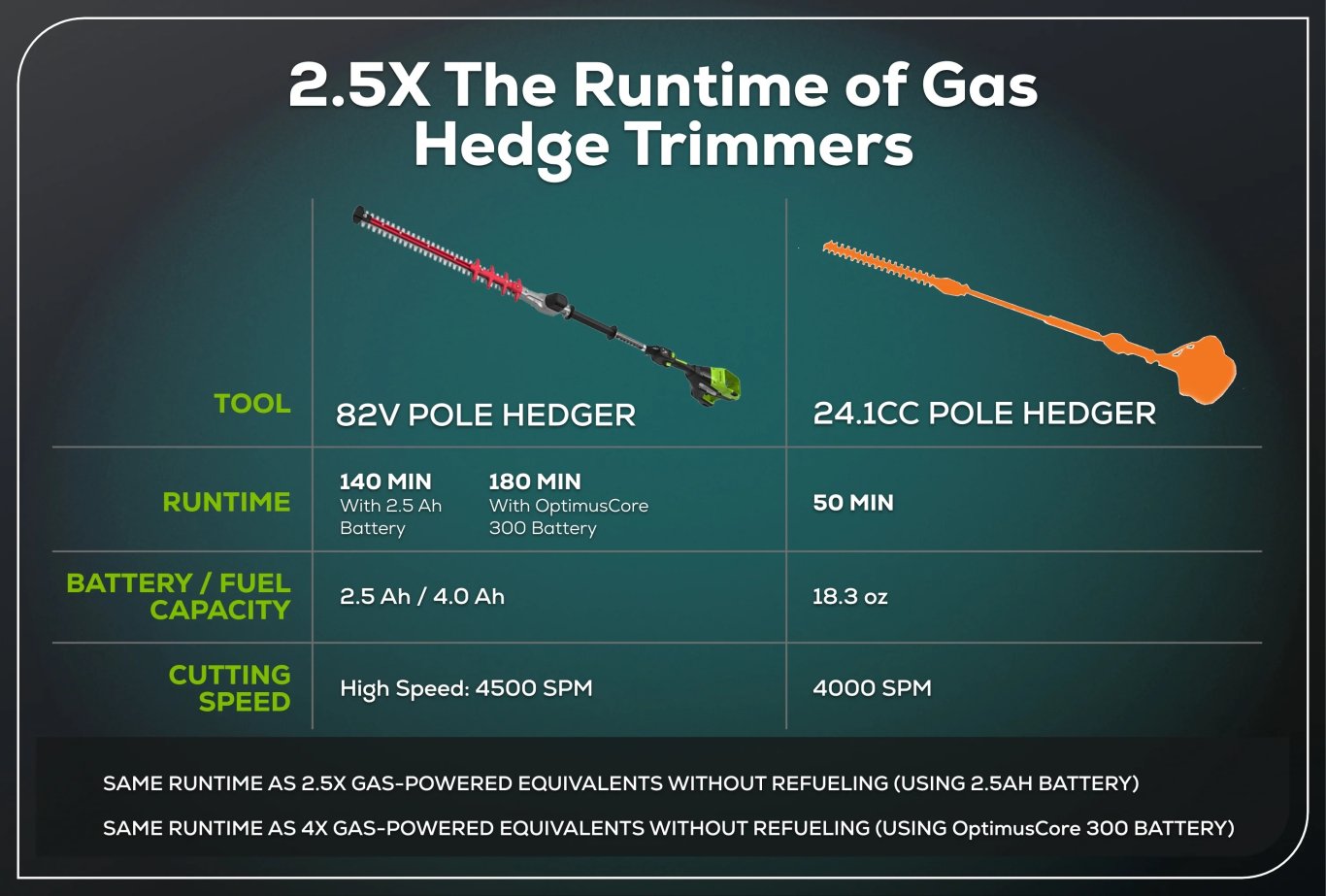 2.5X THE RUNTIME OF GAS HEGDE TRIMMERS