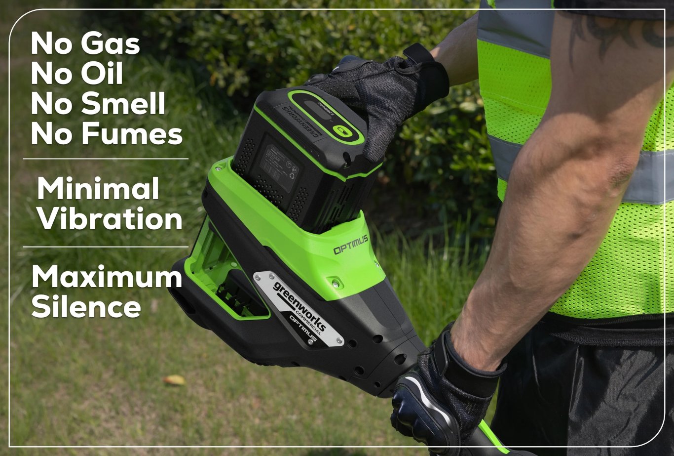 No gas, no oil, no fumes - just pure convenience. Experience a quieter, smoother operation with minimal vibration; minimizing vibration to an exceptional 3 m/s², much lower than gas equivalent models at 5 m/s². |