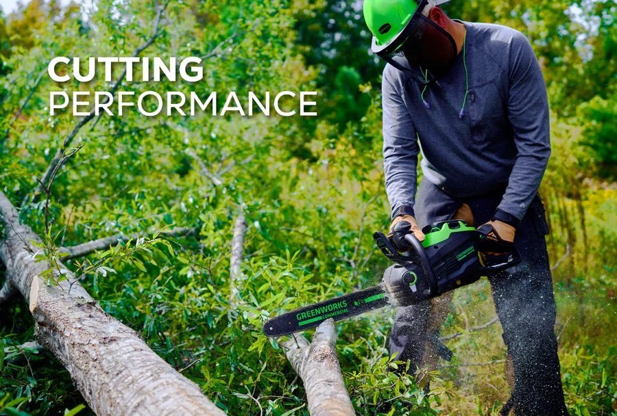 Powered by Greenworks® Commercial's innovative technology, this chainsaw guarantees a gas-free, low-maintenance solution without compromising on power, making it the ideal choice for those seeking a high-performance chainsaw for all their commercial cutting needs.