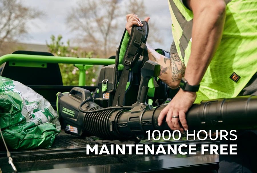 The 82V 690 CFM Dual Port Backpack Blower redefines landscaping convenience. Forget the endless cycle of gas refills, oil changes, and spark plug woes. This Greenworks® Commercial powerhouse boasts a brushless motor engineered for a staggering 1,000 hours of maintenance-free operation. The brushless motor delivers exceptional blowing force for a full 1,000 hours without a single oil change, spark plug replacement, or filter cleaning. |