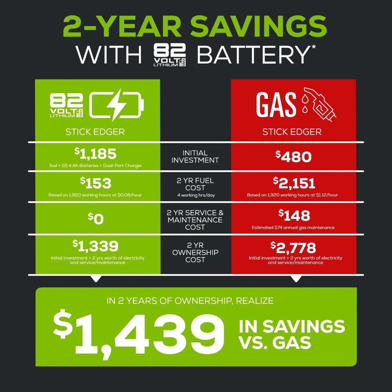 8” BRUSH LESS STRAIGHT SHAFT EDGER 8 2 ES15The Greenworks 82V Straight Shaft Edger delivers the high power and torque necessary for outstanding edging performance in tough conditions. Designed for the pros. This edger has an optimized operator position and an easy-to- use two-step switch for comfort and safety, allowing operators to maintain larger properties without runtime constraints. Equipped with a high-efficiency brushless motor producing SB% more power than a 28cc gas edger, this unit provides a cutting depth of up to 2.2" with an 8 '' heat-treated blade. A high-strength magnesium guard and welded aluminum shaft offer the durability needed to withstand any job thrown at it. This 82V edger provides up to 7000 RPM, allowing users to tackle large jobs quickly. With a front-mount motor and rear-mount battery housing. This unit carries a balanced weight of 16.3S lbs. with a battery and only 11.S lbs. without. To top it off, this commercial-grade edger is IPX4 certified weather and water-resistant. |