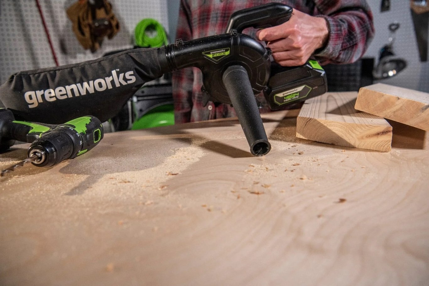 - Shop Blower is compatible with Greenworks DVT (48V / 24V) batteries