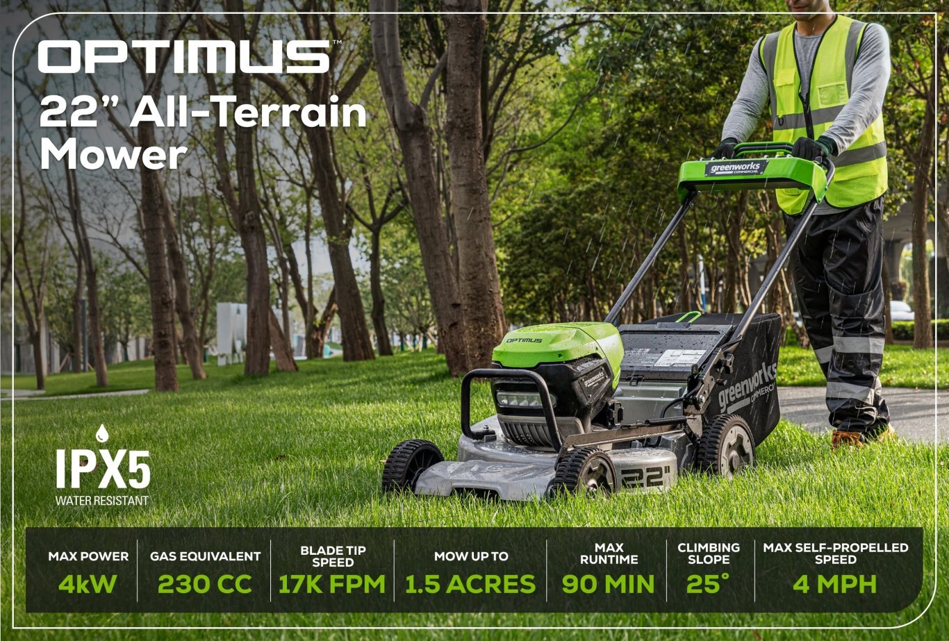 Ensures unparalleled runtime and power, covering up to 1.5 acres of lawn and providing up to 90 minutes of operation with two fully charged 8.0 Ah batteries. |