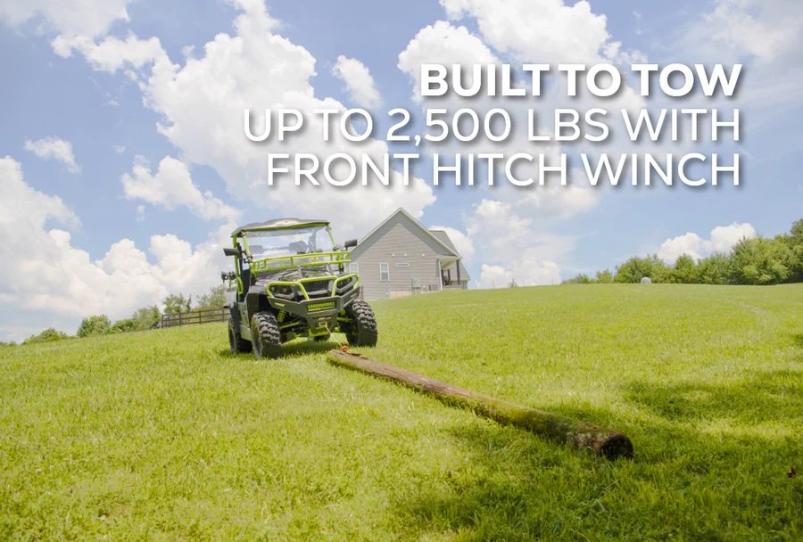 Built To Work: Tow up to 1,500 lbs with the rear hitch, and comes equipped with 2,500 lbs. front hitch winch