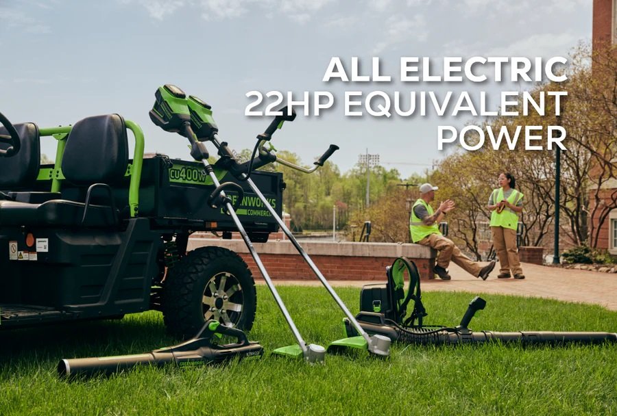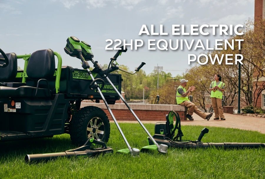 A DEPENDABLE WORKHORSE, DAY OR NIGHTComplete your work with speed and precision with the CU400W, a go-anywhere, do-anything commercial work utility vehicle with the power of a 22 HP gas engine but none of the costly upkeep. Say goodbye to fuel, fluids, and filters - Greenworks® Commercial leads the way with this battery-powered UTV that’s engineered to redefine efficiency in your hauling and transporting tasks. With the CU400W, you can expect: