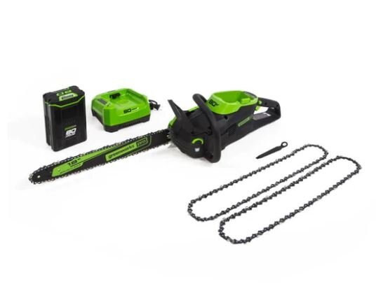 Greenworks 80V 18" Chainsaw with 4.0Ah Battery and Charger Included plus (2) 18" Chains