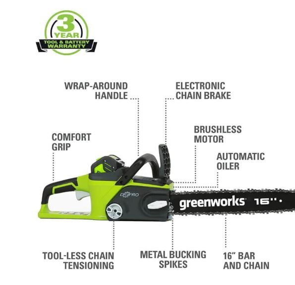 Tool-less Chain Tensioning - For quick adjustments so you can get back to the task at hand.