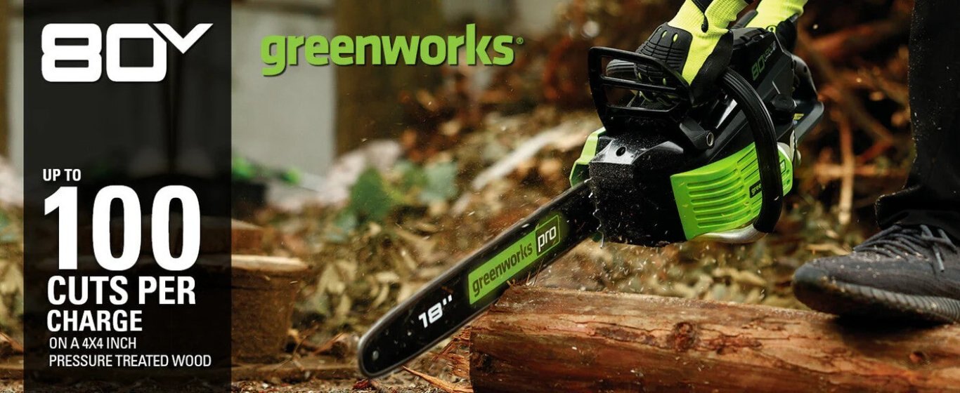 for optimal weight distribution we only recommend the use of either our Greenworks 80V 2.0 AH or 2.5 AH batteries. This process also reduces the chance of kickback when the saw is in use.