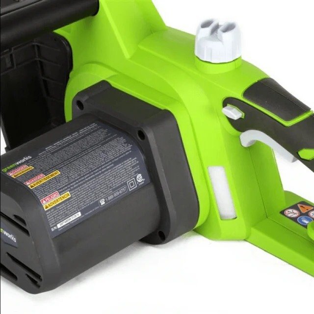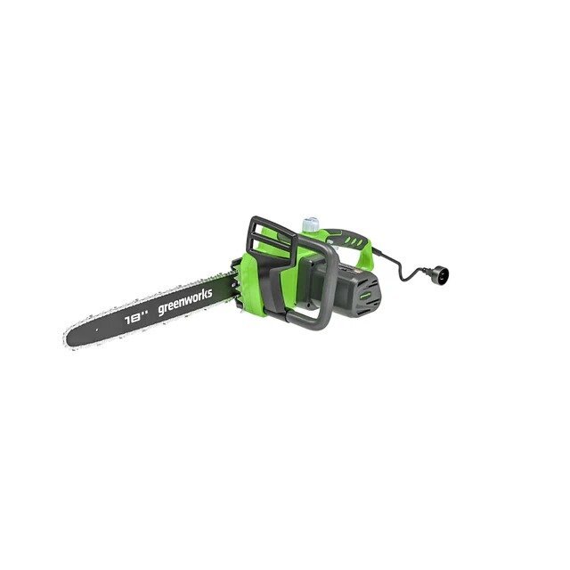 Welcome to a Life. Powered. by Greenworks. Powered by a high-efficiency 14.5 amp motor, this Greenworks corded chainsaw delivers the power and performance you need for all your household chores, without the noise, fumes, or harmful emissions. It features our No Prime, No Choke, No Pull- easy-starting system for fast starts every time, with no aggravating pull cord. This lightweight corded chainsaw is equipped with an 18-inch bar and chain, tool-less chain tensioning for easy bar and chain maintenance, automatic chain oiler, transparent oil fill window, and a hand guard. Kick gas to the curb and go green with no fumes, no mixing, no maintenance and no pull cords. Let Greenworks help you take the work out of yard work. Backed by a 3-year tool & battery warranty, this chainsaw is built to last. -