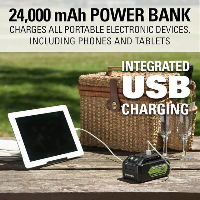 - Compatible with Greenworks 24V Li-Ion system for fade-free power with no memory loss after charging and an assortment of tools to complete all your indoor and outdoor projects