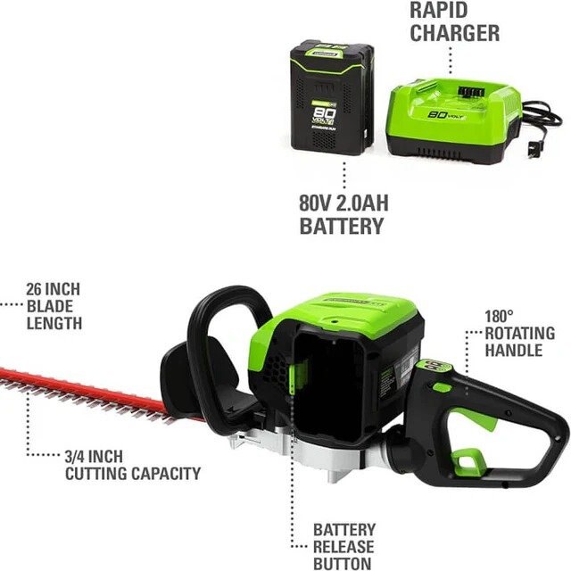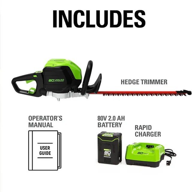 Greenworks 80V 26" Brushless Hedge Trimmer, 2.0Ah Battery and Charger Included - GHT80321 22372CA