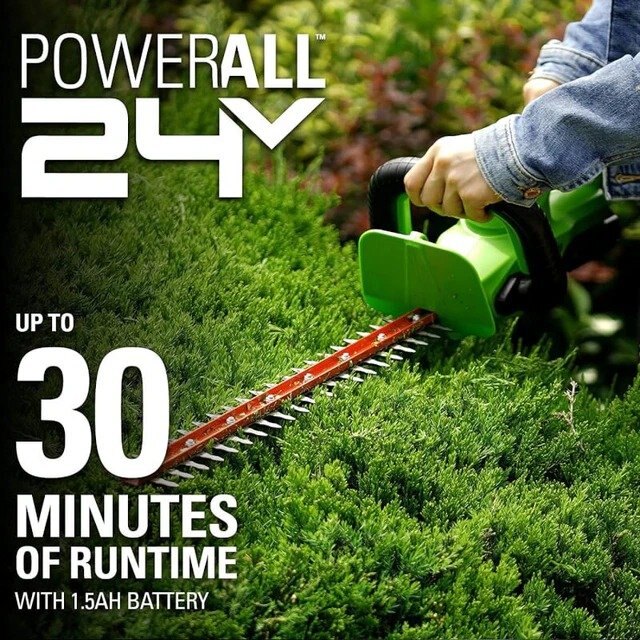 The Greenworks 24V lithium-ion platform powers over 50 indoor and outdoor products, including lawn mowers, blowers, string trimmers, chainsaws, power tools, and more! The 24V lithium-ion battery provides 20% more power and 35% more run-time, and delivers fade-free power with no memory loss after charging. The outdoor power equipment allows you to tackle up to 1/4 acre with the available 1.5Ah, 2Ah, 4Ah, and 5Ah batteries. USB ports are integrated into the BAG711, BAG708, BAG709, BAG710 batteries, making it a portable charger for phones, tablets, and other compatible electronic accessories. The Greenworks 24V platform comes with a 3 year tool / battery warranty to protect your investment. |