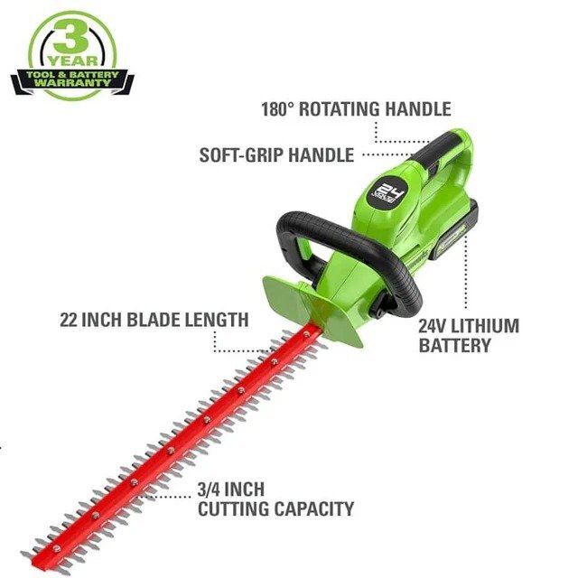 The Greenworks 24V lithium-ion platform powers over 50 indoor and outdoor products, including lawn mowers, blowers, string trimmers, chainsaws, power tools, and more! The 24V lithium-ion battery provides 20% more power and 35% more run-time, and delivers fade-free power with no memory loss after charging. The outdoor power equipment allows you to tackle up to 1/4 acre with the available 1.5Ah, 2Ah, 4Ah, and 5Ah batteries. USB ports are integrated into the BAG711, BAG708, BAG709, BAG710 batteries, making it a portable charger for phones, tablets, and other compatible electronic accessories. The Greenworks 24V platform comes with a 3 year tool / battery warranty to protect your investment. |
