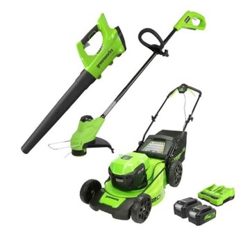 Greenworks 48V (2 x 24V) 20" Lawn Mower & 24V 10" String Trimmer & 24V Blower Combo, (2) 24V 4Ah Batteries and Charger Included 1324802