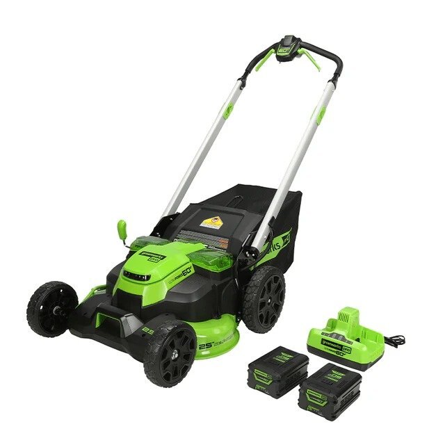 The Greenworks 60V 25" Self-Propelled Mower features the most advanced power-cutting system in the industry. Where gas mowers bog down, our intelligent mower senses grass conditions to send optimal power to the blade motors, maintaining consistent blade speeds of 4,000-4,500 RPM through tall, thick, and wet grass. Mow longer with our patented AutoSwitch Technology. When one battery dies, the other automatically takes over, seamlessly doubling your runtime without the need for manual swapping.