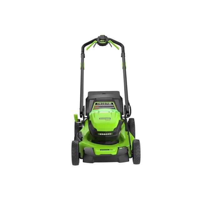 Welcome to a Life. Powered. by Greenworks. When it comes to outdoor power equipment, you put the emphasis on “power.” And why not? For homeowners like you who take on jobs big or small, you need a cordless battery operated lawnmower with heavy grade construction and long-lasting peak performance. The Greenworks Pro 80V family of tools meet the challenge with a universal battery system that works across multiple products, high-efficiency motors, and cutting edge features. Kick gas to the curb and go green with no fumes, no mixing, no maintenance, and no pull cords. Let Greenworks help you take the work out of yard work. Keep your lawn pristine with the Greenworks 80V 21" Brushless Self-Propelled Mower, 4.0Ah and 2.0Ah Battery and Charger. This lawnmower features a steel deck, 7 cutting heights, innovative SmartCut technology and folding handles for compact storage. Plus, all Greenworks Pro 80V tools feature a 4 Year Limited Tool & Battery Warranty to ensure your investment is protected. - DURABLE The durable 21-inch steel deck allows you to handle large areas of grass quickly and easily. With 7 different cutting height options, you can ensure the best cut in all environments.