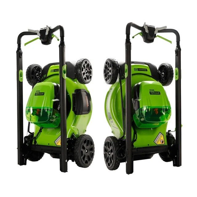 CONVENIENT STORAGE Adjustable handle positions to suit your height and ergonomic easy-to-use user controls guarantee ultimate comfort. Plus, use up to 70% less space in your garage with EZ Fold™ aluminum handles for compact vertical storage.